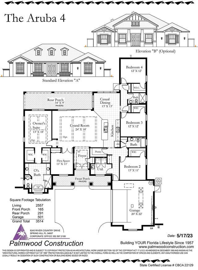 Spacious, elegant, and perfectly tailored for Florida families—the Aruba 4 Classic brings high-end design to everyday living. With 2,607 square feet, 4 bedrooms, and 3 full bathrooms, this Estate Series floor plan by Palmwood Construction delivers comfort, flexibility, and refined finishes throughout.