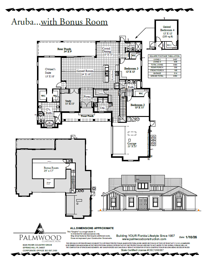 Designed for flexible, modern living, the Aruba 4 Bonus offers 3,318 Sq. Ft. of living space and includes all the same great features found in our Aruba series designs. The open-concept layout creates a seamless flow between the gourmet kitchen, spacious great room, and private owner’s suite.
