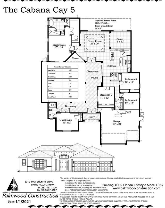 Designed for growing families, multigenerational living, or those who simply love extra space, the Cabana Key 5 delivers comfort, style, and Palmwood craftsmanship at every turn. With 2,693 square feet, 5 bedrooms, and 3 full bathrooms, this Estate Series model offers the ideal combination of openness, privacy, and flexibility—perfectly suited for Florida living.